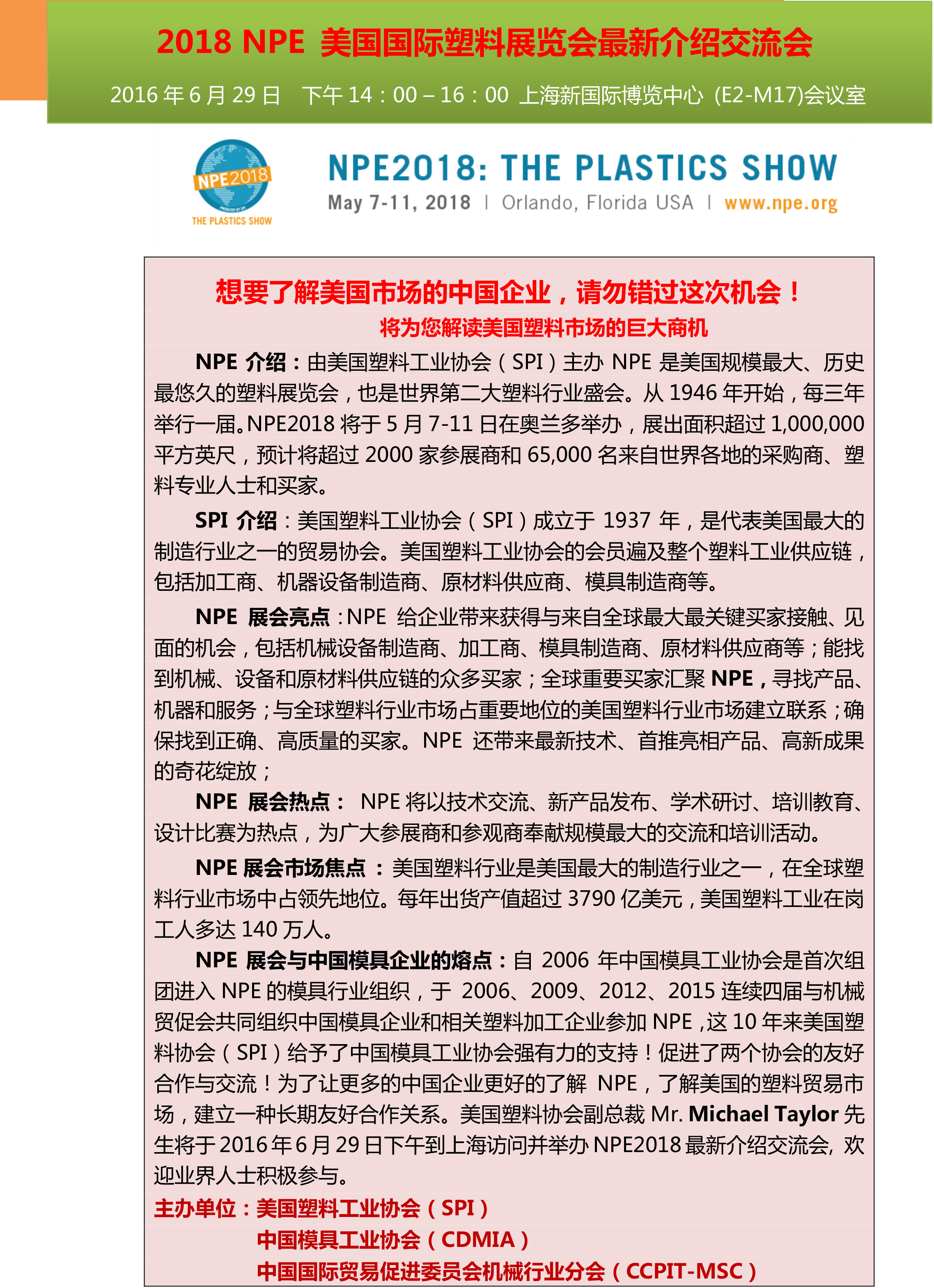 2018NPE 美國國際塑料展覽會(huì)最新介紹交流會(huì)