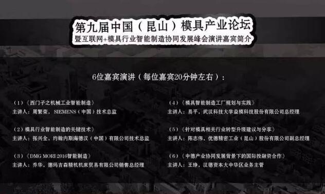 由中國模具工業協會、昆山國家高薪技術產業開發區管委會主辦,昆山市模具工業協會承辦的第九屆中國(昆山)模具產業論壇暨互聯網+模具行業智能制造協同發展峰會于2016年11月30日在昆山皇冠國際會展酒店順利召開,中國模具工業協會常務副會長兼秘書長武兵書先生、常務副秘書長秦珂女士出席了會議。