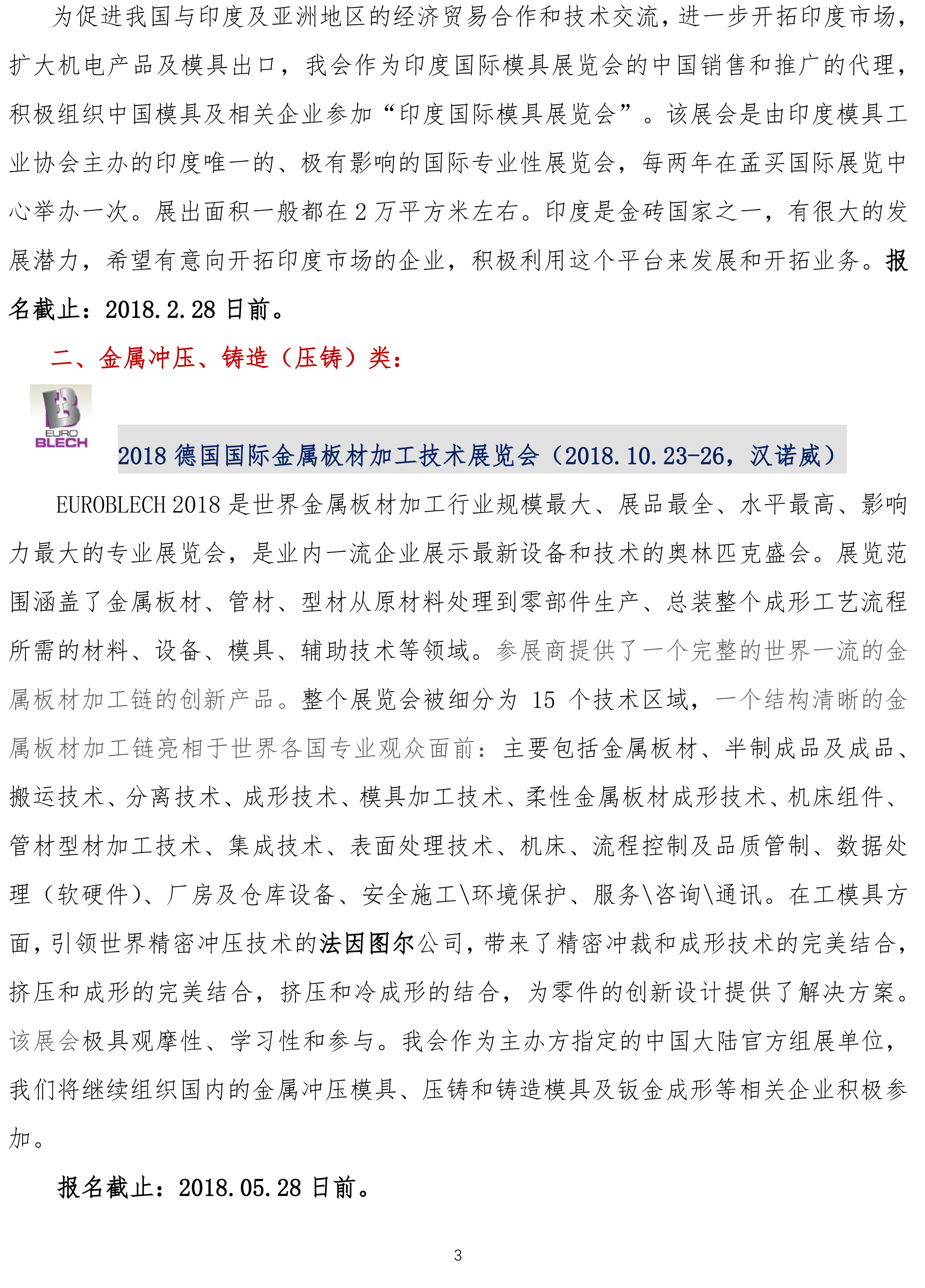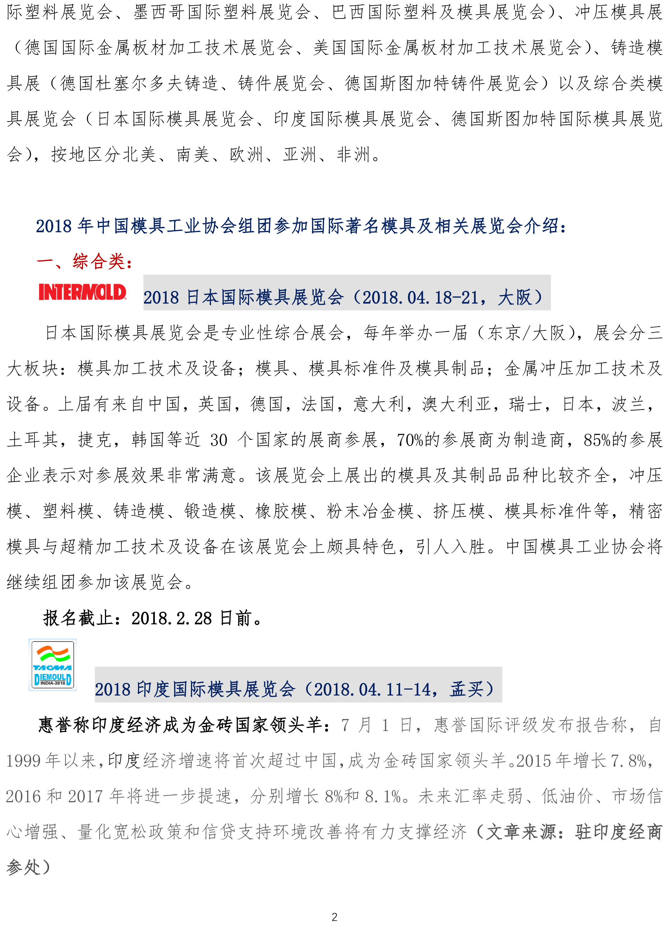 2018年中國模具工業協會組團參加國際著名模具及相關展覽會介紹