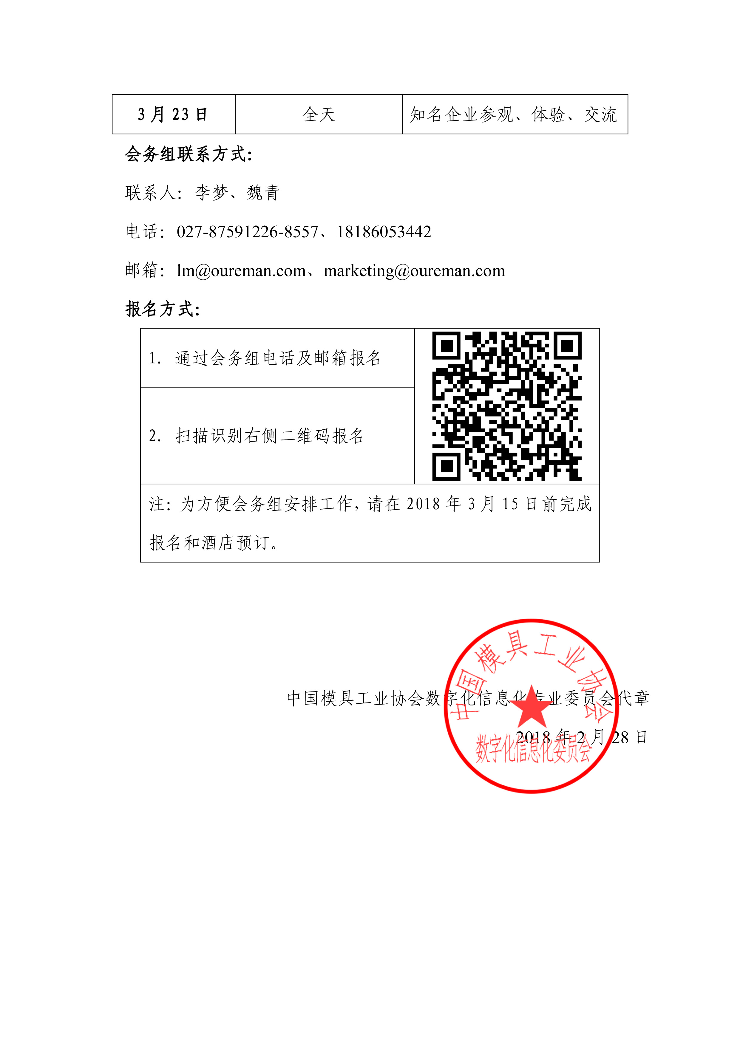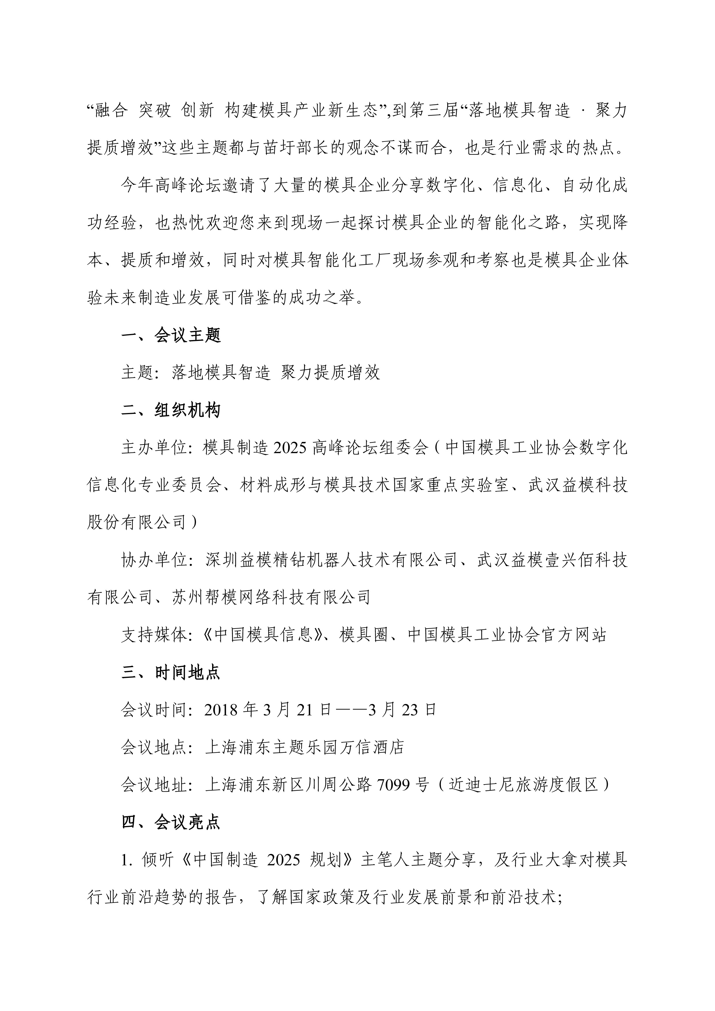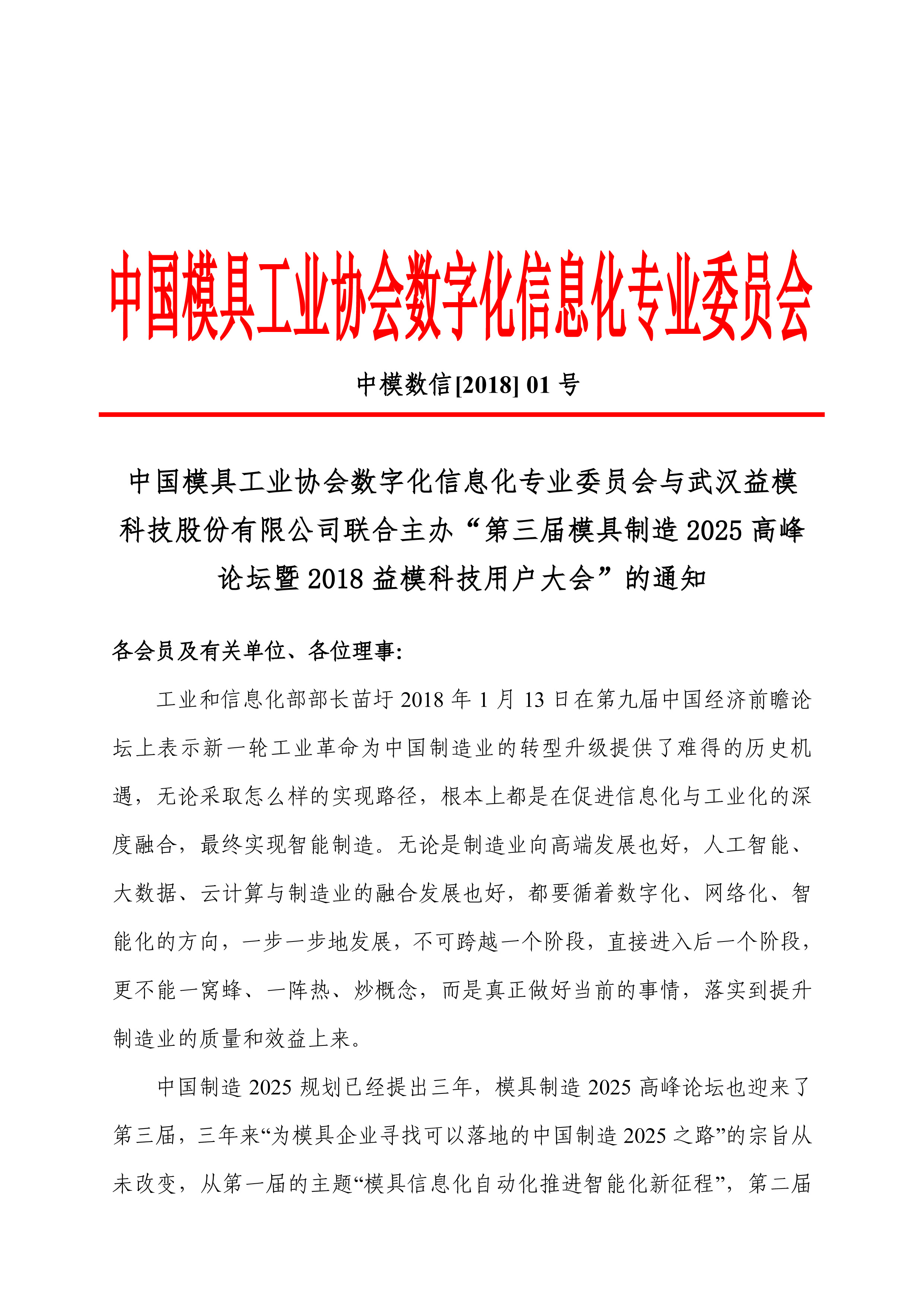 中國模具工業協會數字化信息化專業委員會與武漢益模科技股份有限公司聯合主辦“第三屆模具制造2025高峰論壇暨2018益模科技用戶大會”的通知