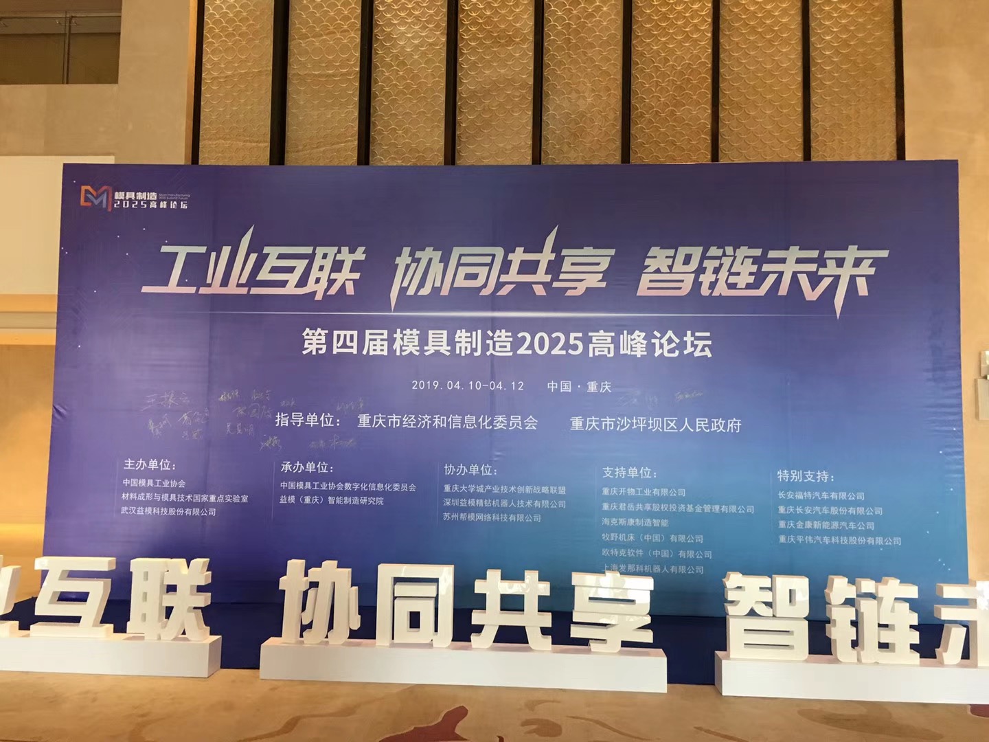 2019年4月11日,由中國模具工業(yè)協(xié)會(huì),材料成形與模具技術(shù)國家重點(diǎn)實(shí)驗(yàn)室,武漢益模科技股份有限公司共同主辦的第四屆模具制造2025高峰論壇在重慶召開。