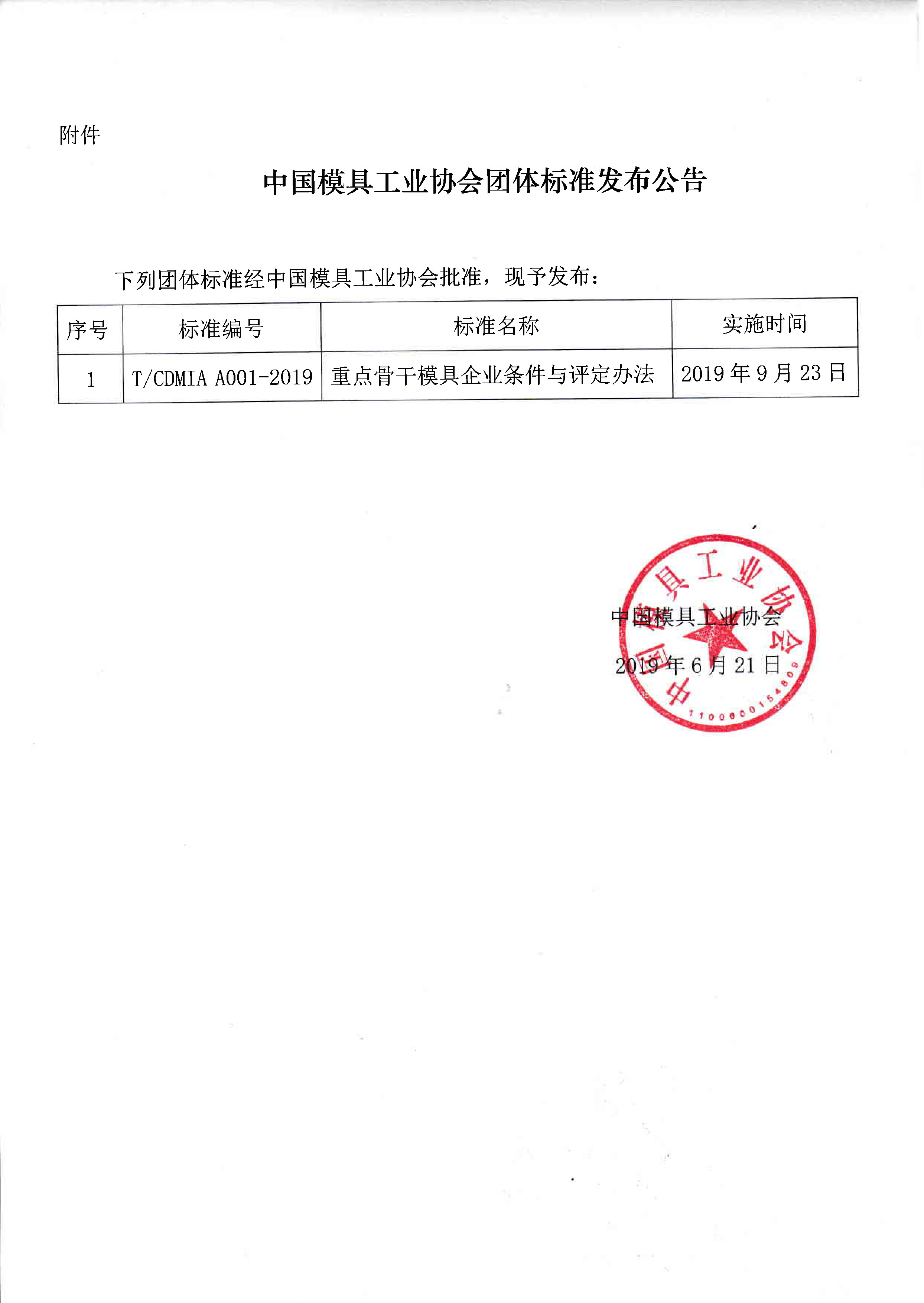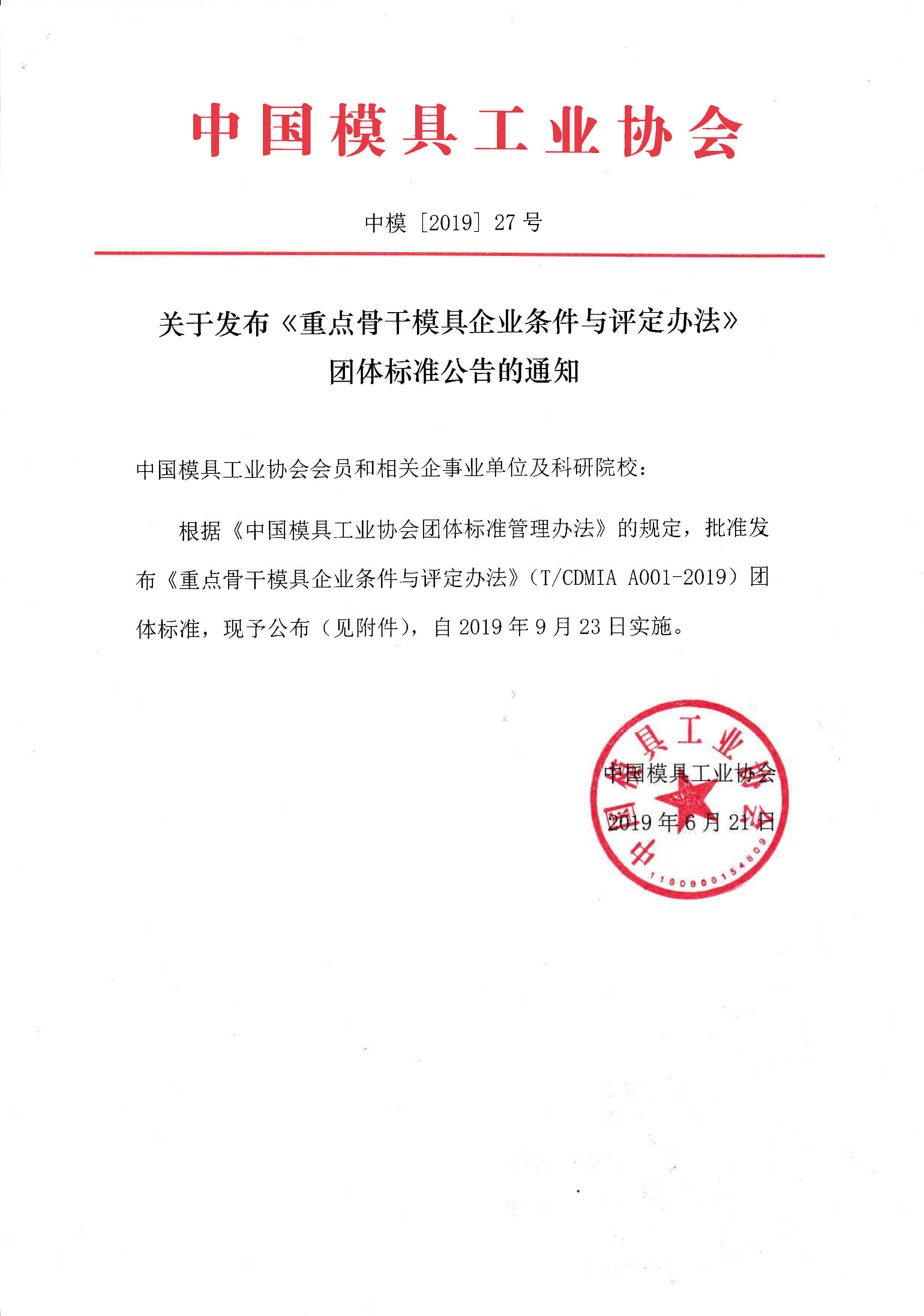 關于發布《重點骨干模具企業條件與評定辦法》團體標準公告的通知