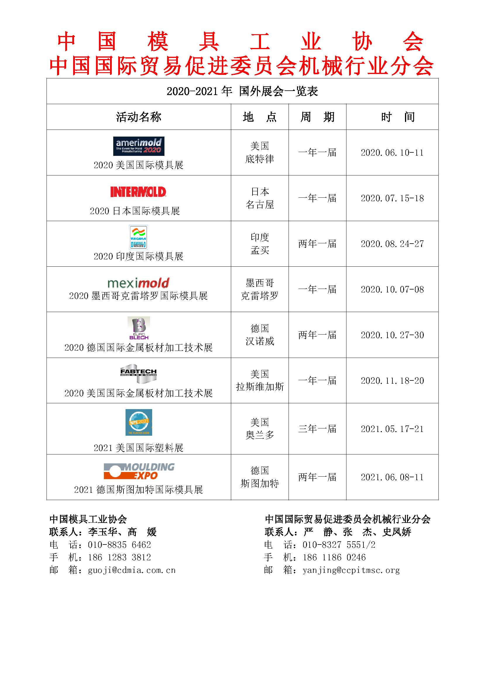 2020-2021年 國外展會一覽表