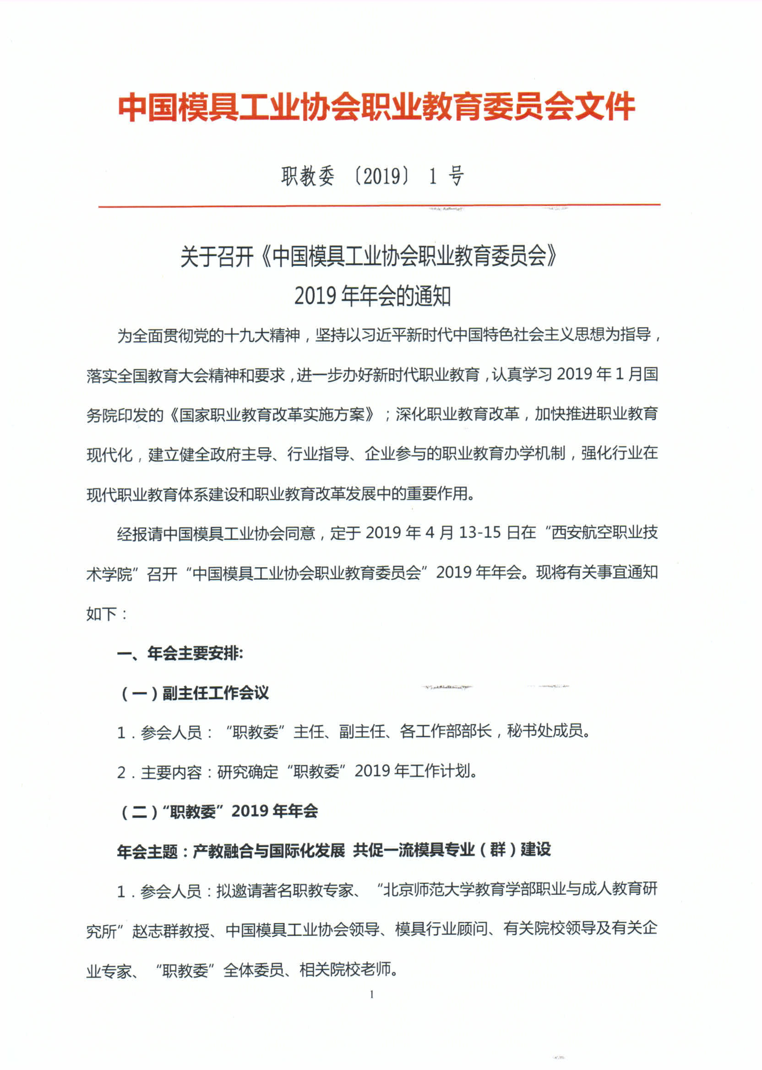 關(guān)于召開《中國模具工業(yè)協(xié)會職業(yè)教育委員會》2019年年會的通知