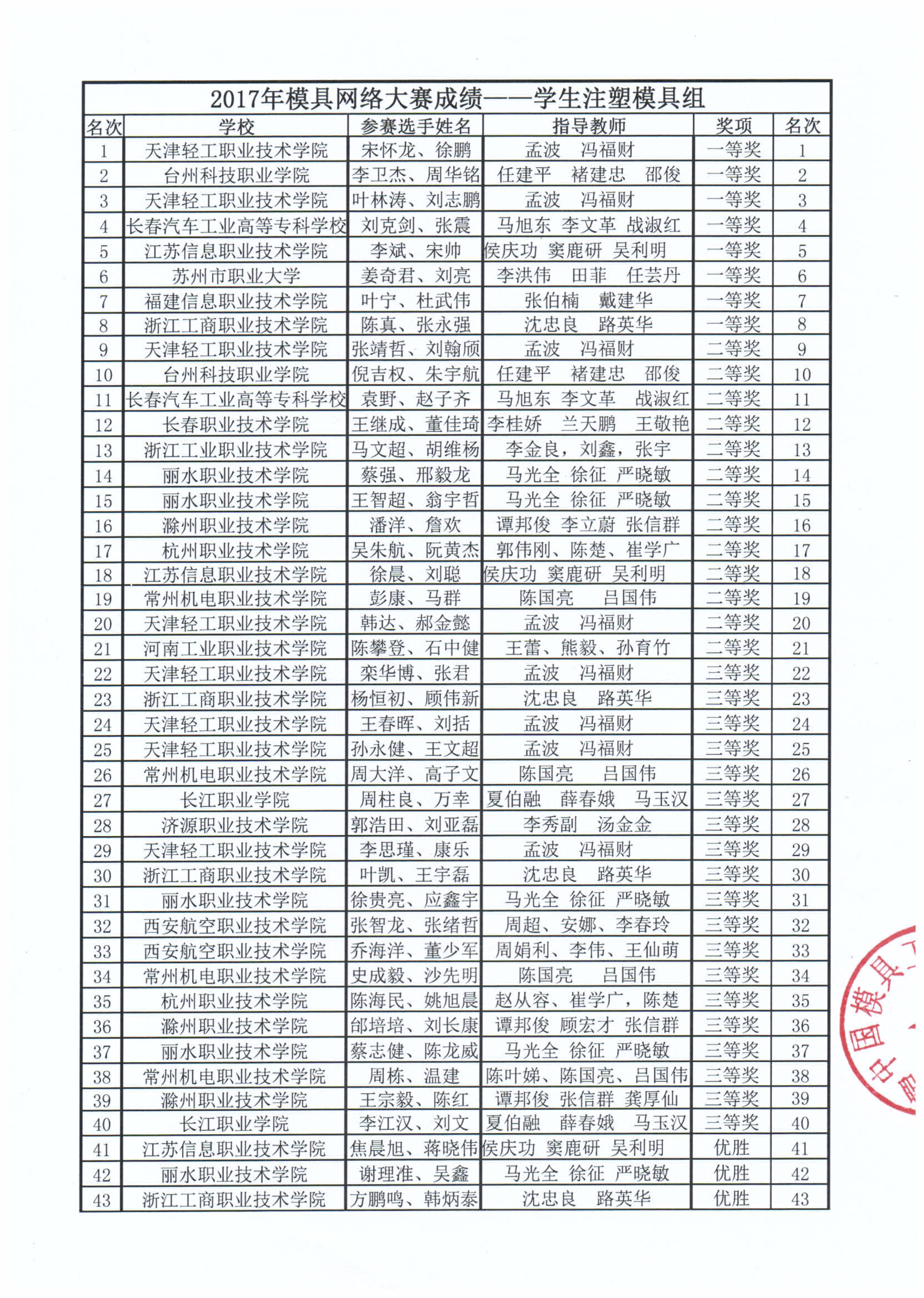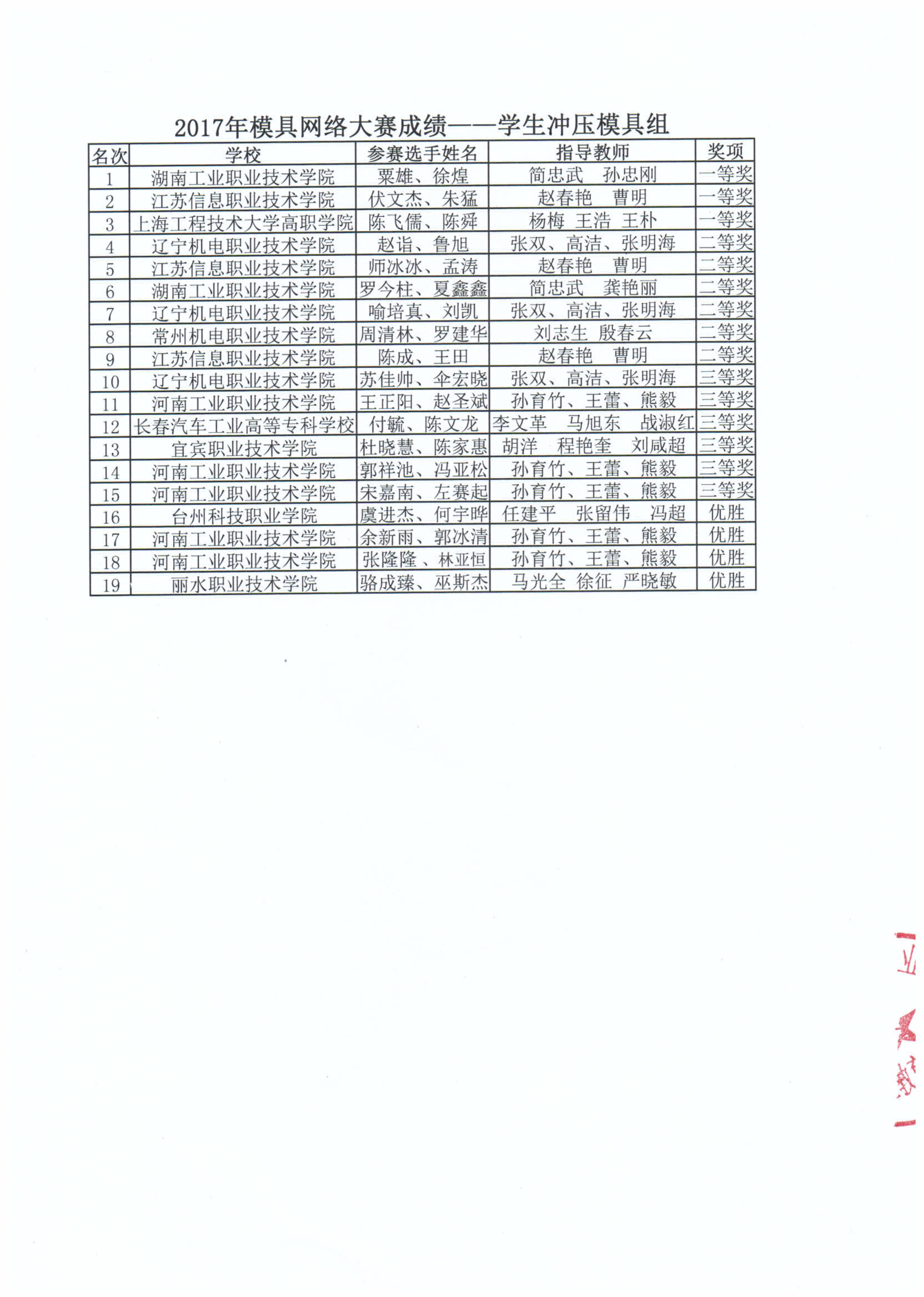 2017年模具網絡大賽成績