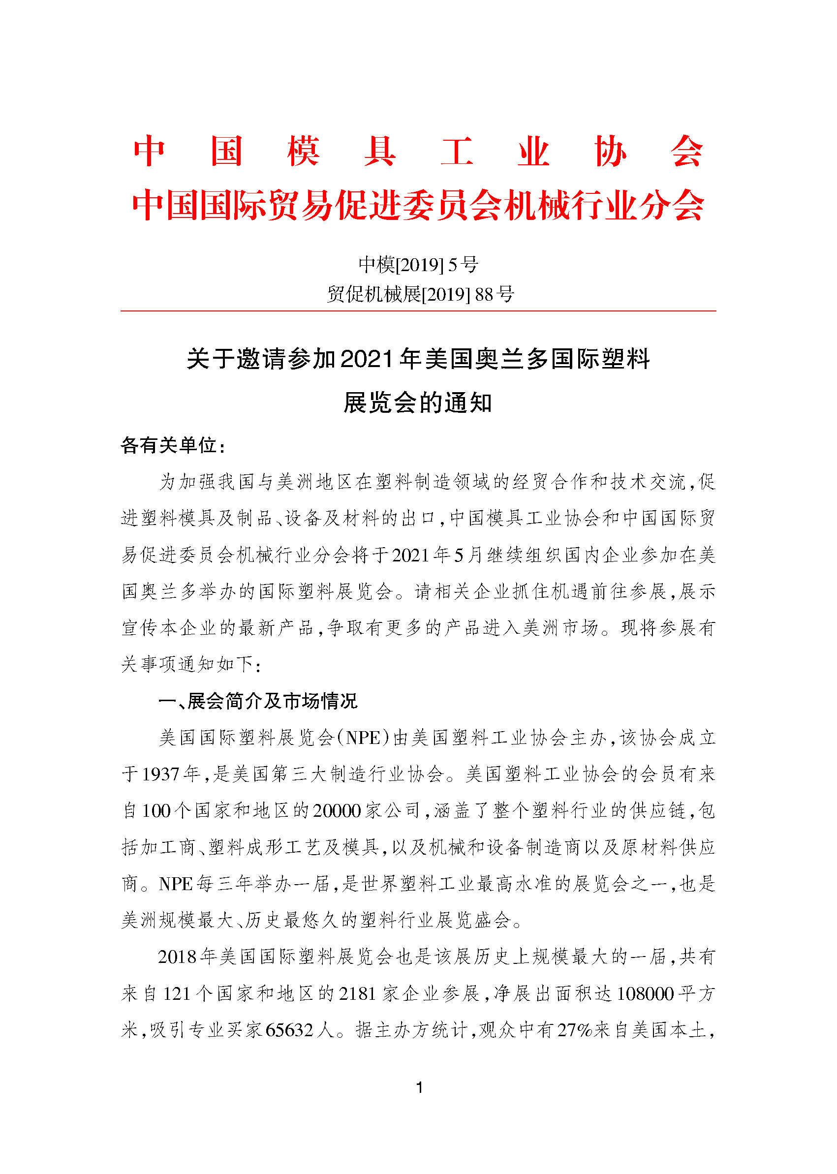 關于邀請參加2021年美國奧蘭多國際塑料展覽會的通知