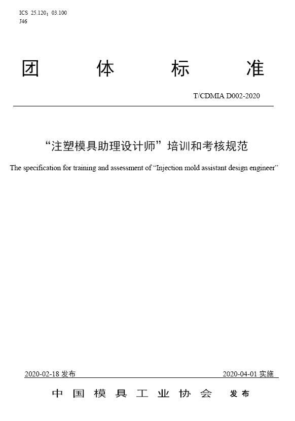 中國模協標準D002-注塑模具助理設計師”培訓和考核規范-2020