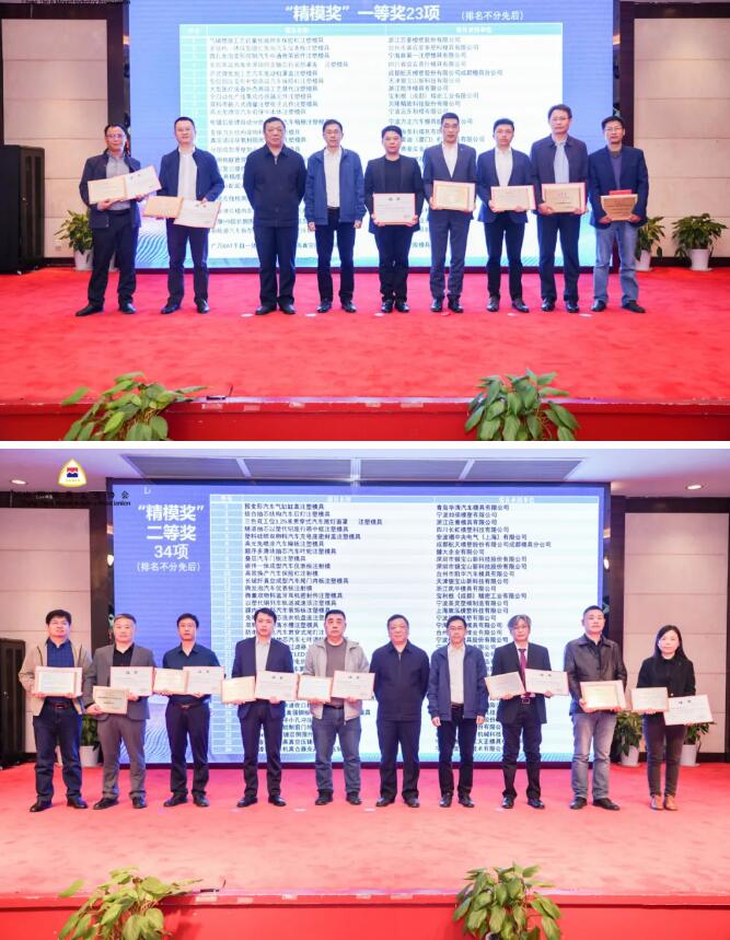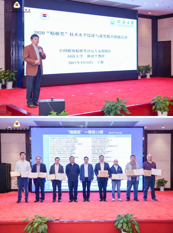 中國模協(xié)精模獎評定專家組組長、同濟大學(xué)林建平教授對2020“精模獎”技術(shù)水平綜述與獲獎模具創(chuàng)新進行了精彩點評。常會長、黃會長為“精模獎”團隊及“優(yōu)秀供應(yīng)商”單位頒發(fā)獎牌證書。
