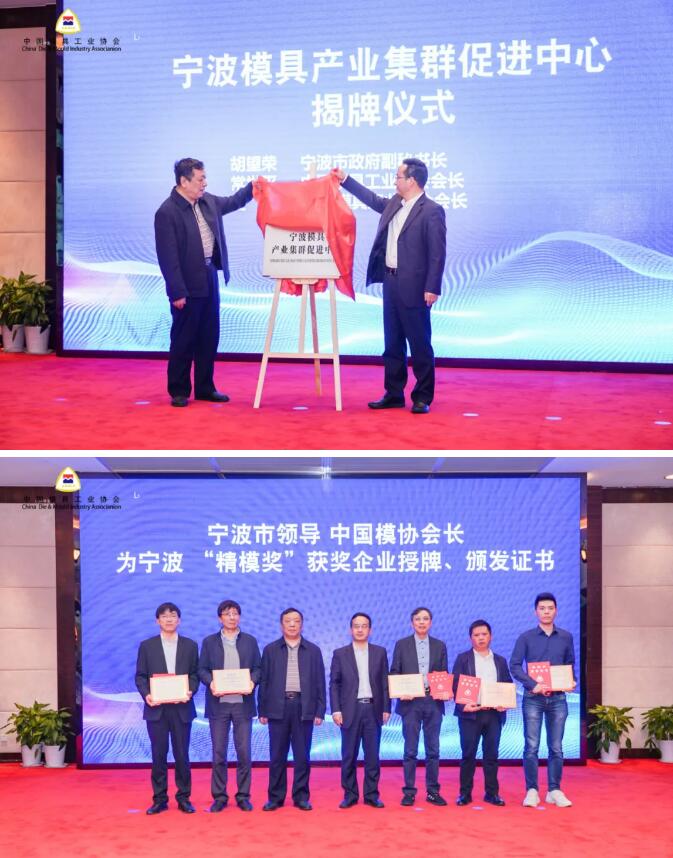 接著,北侖區(qū)領(lǐng)導(dǎo)介紹大碶高檔模具產(chǎn)業(yè)園創(chuàng)新綜合體建設(shè)情況,寧海縣領(lǐng)導(dǎo)介紹寧波市模具產(chǎn)業(yè)園創(chuàng)新綜合體建設(shè)情況,寧波模協(xié)秘書長、天正董事長張小巖介紹寧波中模云平臺建設(shè)運行情況,寧波市經(jīng)信局介紹寧波模具產(chǎn)業(yè)集群建設(shè)方案。胡望榮與中國模具協(xié)會會長常世平共同為寧波模具產(chǎn)業(yè)機器促進中心揭牌,中模云平臺還與各地方協(xié)會進行了現(xiàn)場簽約,寧波市領(lǐng)導(dǎo)、中國模協(xié)會長為寧波精模獎獲獎企業(yè)頒獎。獲獎代表臉上主笑容、眼中有光,是對成績的驕傲,是對未來的憧憬。