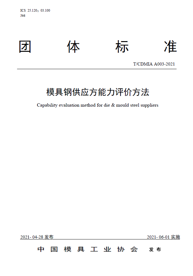 中國模協(xié)標準A003-模具鋼供應(yīng)方能力評價方法-2021