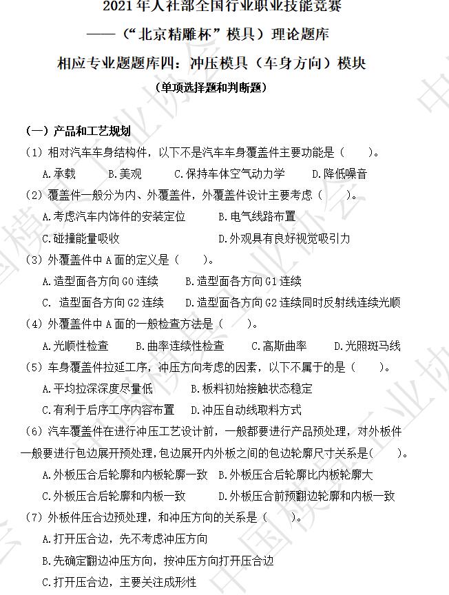 ——(“北京精雕杯”模具)理論題庫