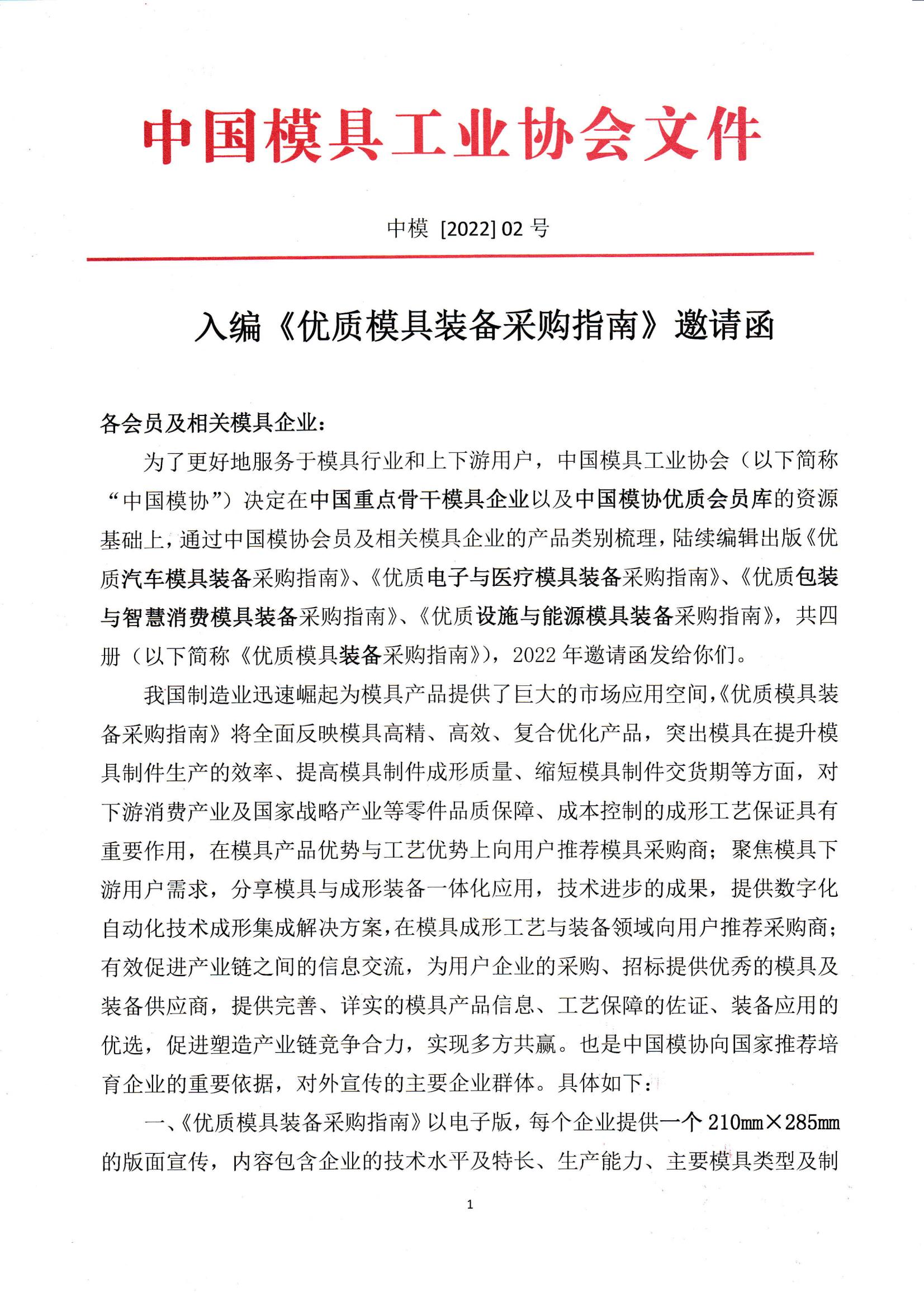 入編《優質模具裝備采購指南》邀請函