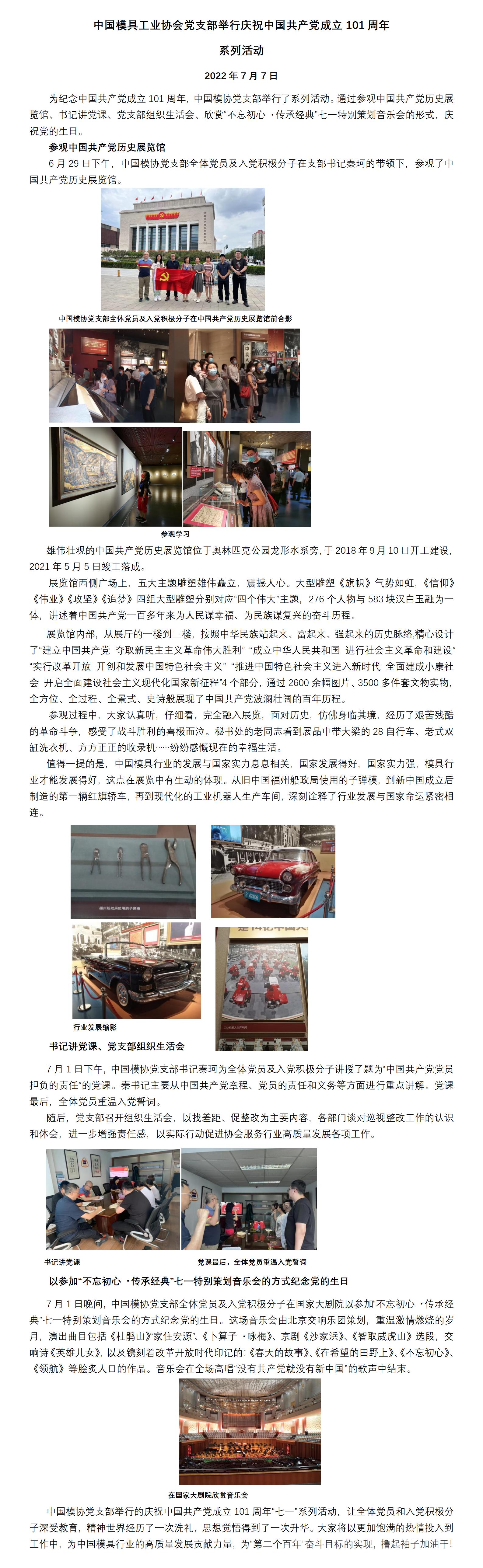 中國模具工業協會黨支部舉行慶祝中國共產黨成立101周年 系列活動