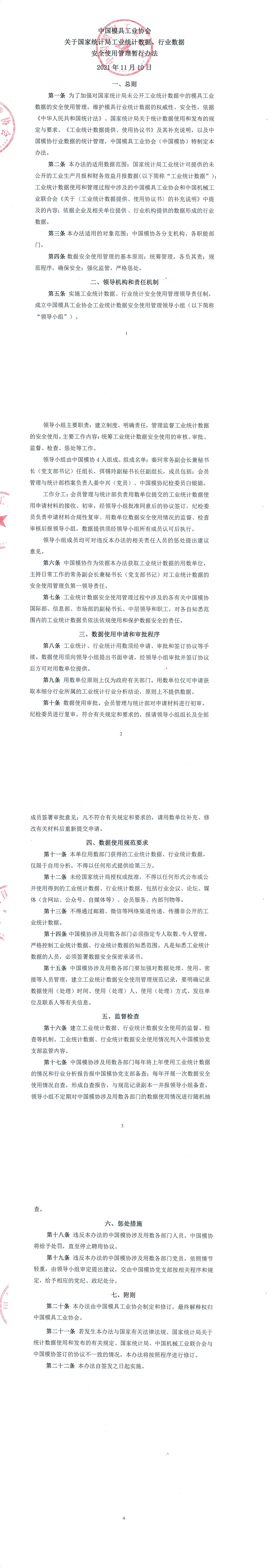 中國(guó)模具工業(yè)協(xié)會(huì)關(guān)于國(guó)家統(tǒng)計(jì)局工業(yè)統(tǒng)計(jì)數(shù)據(jù)、行業(yè)數(shù)據(jù)安全使用管理暫行辦法