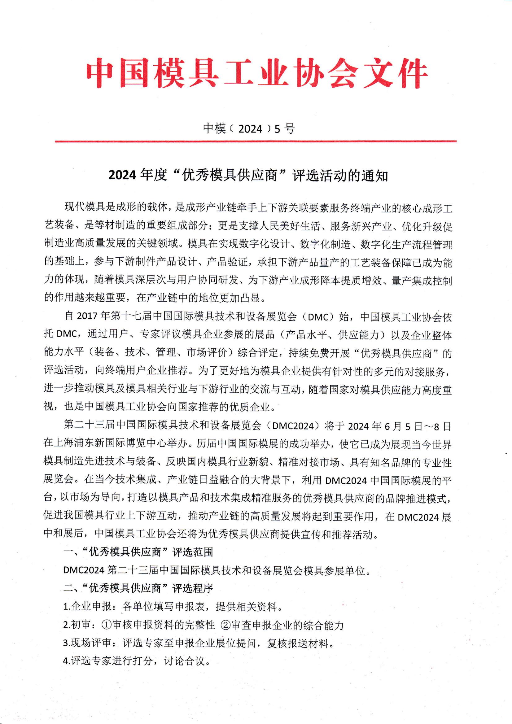 2024年度“優(yōu)秀模具供應(yīng)商”評選活動的通知